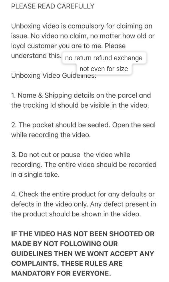NO RETURN NO REFUND NO EXCHANGE