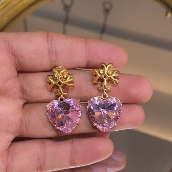 TORY PINK DROP HEART EARRINGS